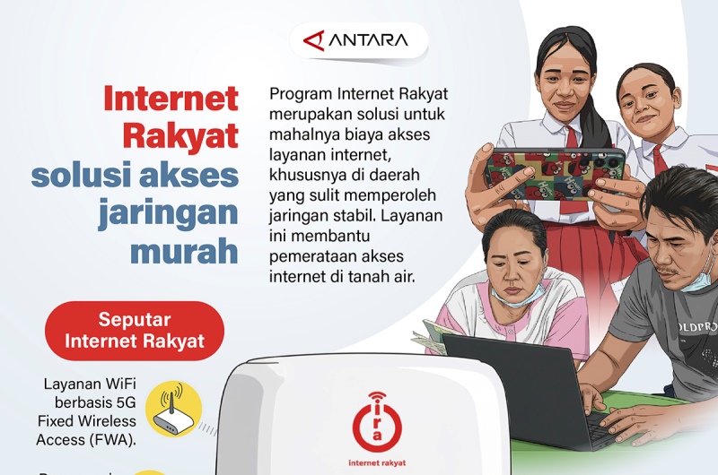 Program Internet Rakyat merupakan solusi untuk mahalnya biaya akses layanan internet, khususnya di daerah yang masih sulit memperoleh jaringan stabil. Layanan ini membantu pemerataan akses internet di tanah air. (ant)