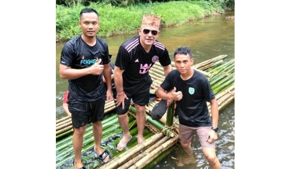NANGA BULIK, PROKALTENG.CO – Legenda sepak bola Indonesia, Cristian “El Loco” Gonzales. Merasakan pengalaman unik dan tak terlupakan saat menyusuri sungai di Desa Penyombaan, Kecamatan Delang, Kabupaten Lamandau, Kalimantan Tengah, Selasa (7/10/2025).