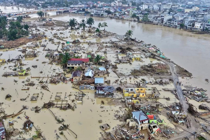 Infrastruktur vital seperti jembatan, jalan, sekolah, rumah sakit, hingga lahan pertanian dan tambak juga terdampak.
