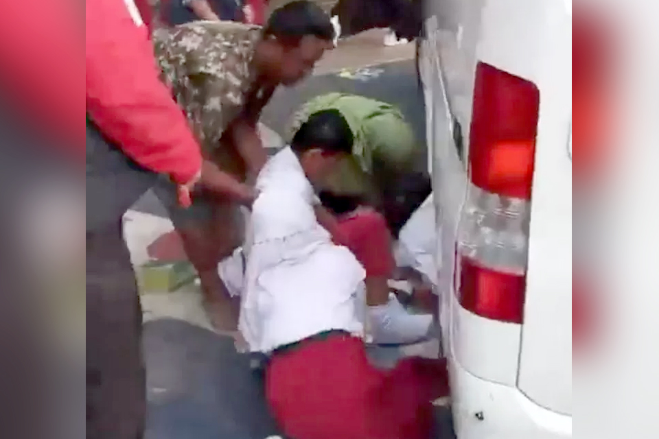 Dalam video yang beredar di media sosial, beberapa murid tergeletak. Ada pula yang berada di bawah kolong mobil.