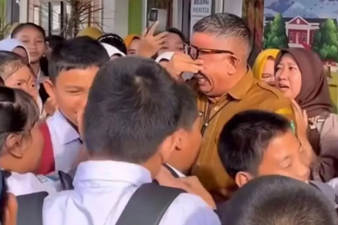 Momen haru perpisahan Roni dengan para siswa terekam dalam sebuah video yang beredar luas. Dalam tayangan itu, ia tampak menangis saat disalami satu per satu oleh muridnya.