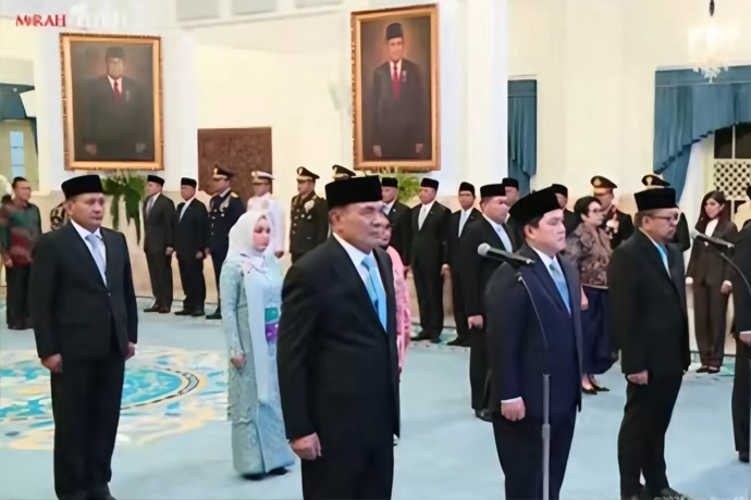 “Sebelum saya mengambil sumpah, berkenan dengan pengangkatan saudara-saudara sebagai menteri dan wakil menteri negara kabinet merah putih dalam sisa masa jabatan periode 2024-2029,” kata Prabowo dihadapan para pejabat baru.
