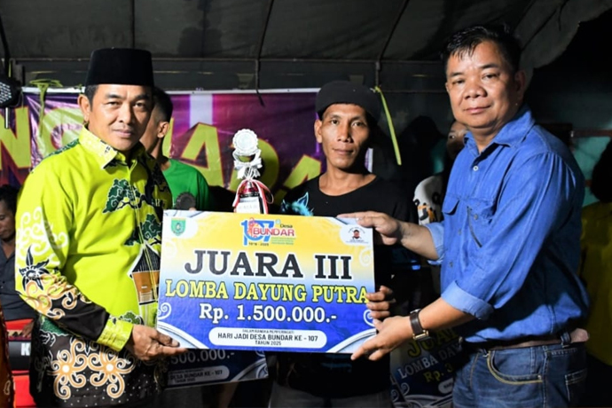 BUNTOK,PROKALTENG.CO – Suasana penyerahan hadiah lomba Agustusan digelar dalam rangka memperingati HUT ke-80 Kemerdekaan Republik Indonesia dan hari jadi Desa Bundar ke-105 di lapangan Aula Balai Desa Bundar, Sabtu lalu terlihat meriah.