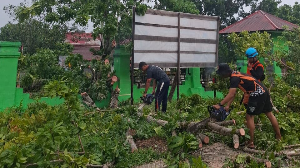 Tim dari Badan Penanggulangan Bencana Daerah (BPBD) Kabupaten Lamandau langsung bergerak cepat melakukan evakuasi dan pembersihan material pohon tumbang yang menghalangi akses jalan serta berpotensi membahayakan pengguna jalan.
