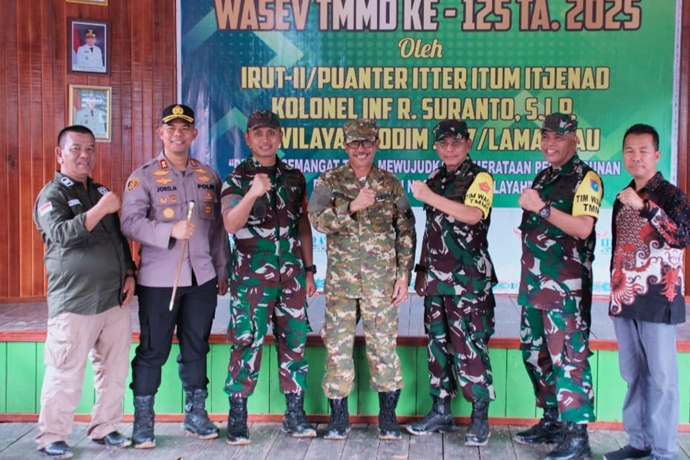 NANGA BULIK, PROKALTENG.CO –Wakil Bupati Lamandau, Abdul Hamid, mendampingi kunjungan kerja Tim Pengawasan dan Evaluasi (Wasev) TNI Manunggal Membangun Desa (TMMD) Reguler ke-125 TA. 2025 di wilayah Kodim 1017/LMD.  Kunjungan ini bertujuan untuk meninjau langsung pelaksanaan TMMD dan memastikan program berjalan sesuai rencana.