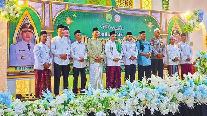 “Peringatan Maulid Nabi Muhammad SAW merupakan momentum penting bagi kita semua untuk kembali meneladani akhlak mulia, perjuangan, serta kepemimpinan beliau,” ucap Masduki.