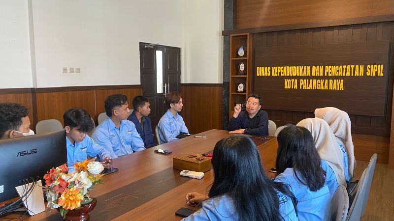 Dalam kunjungan itu, para mahasiswa diajak melihat langsung bagaimana Dinas Kependudukan dan Pencatatan Sipil (Dukcapil) menerapkan layanan digital untuk mempercepat dan mempermudah pengurusan dokumen kependudukan.