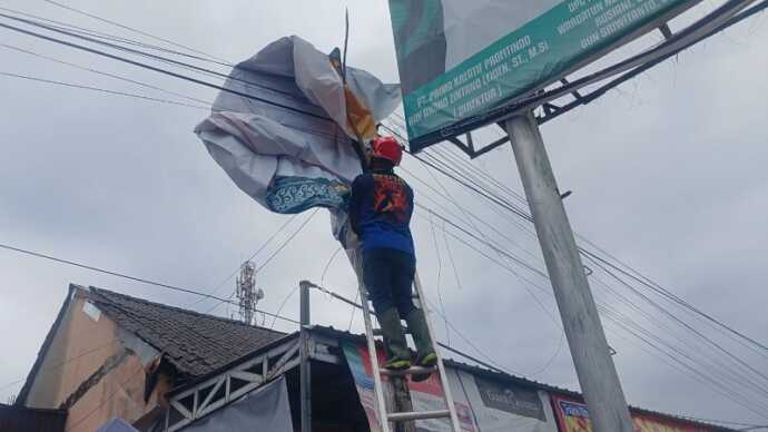 “Spanduk berhasil diturunkan dengan baik dan selamat. Kami mengimbau agar pemilik reklame atau spanduk besar rutin melakukan pengecekan, terutama saat cuaca ekstrem atau angin kencang,” tutupnya. (jef)