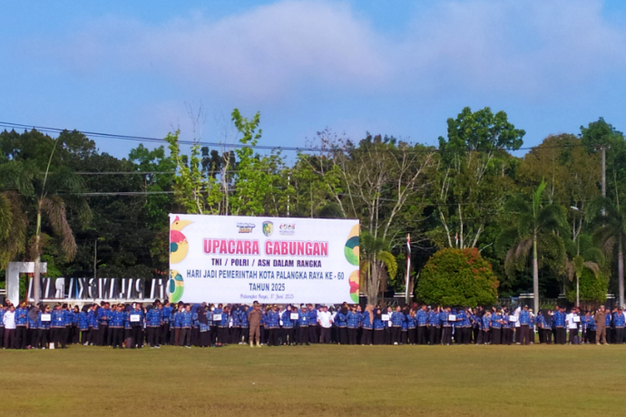 PALANGKA RAYA, PROKALTENG.CO – Upacara bendera gabungan TNI/Polri/ASN memperingati hari jadi Pemerintah Kota Palangka Raya ke-60 berlangsung khidmat di halaman Kantor Wali Kota Palangka Raya, Selasa (17/6/2025).