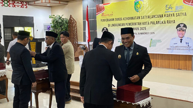 Wakil Wali Kota Palangka Raya, Achmad Zaini, memimpin langsung prosesi penyerahan dan menegaskan bahwa Satyalancana Karya Satya merupakan mandat Presiden RI bagi ASN yang menunjukkan kesetiaan, kecakapan, kedisiplinan, serta integritas dalam menjalankan tugas.