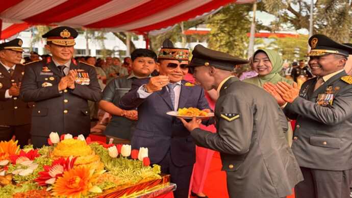 Kasdam XXII/Tambun Bungai Brigjen TNI Sugiyono membacakan amanat Panglima TNI. TNI tahun 2025 mengambil tema TNI PRIMA, TNI Rakyat, Indonesia Maju.