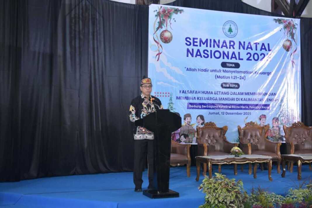 PALANGKA RAYA, PROKALTENG.CO  – Gubernur Kalimantan Tengah  (Kalteng) Agustiar Sabran diwakili oleh Kepala Dinas Perhubungan (Dishub) Provinsi Kalteng Yulindra Dedy membuka secara resmi Seminar Natal Nasional Tahun 2025 di Gedung Serba Guna Paroki Santa Maria Palangka Raya, Jumat (12/12/2025). Seminar ini mengangkat subtema “Falsafah Huma Betang dalam Membangun dan Membina Keluarga Mandiri di Kalteng.”