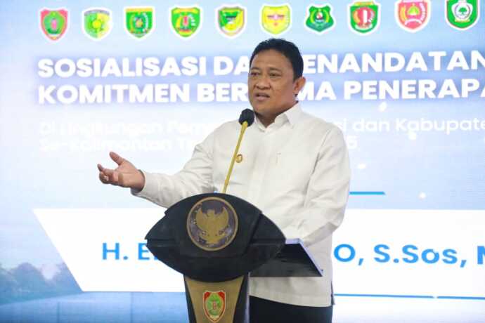 Kegiatan Sosialisasi dan Penandatanganan Komitmen Bersama tersebut berlangsung di Aula Jayang Tingang, Kantor Gubernur Kalteng, Rabu (24/9/2025), dengan dihadiri pejabat pusat dan daerah, termasuk Plt. Kepala Pusat Pembelajaran dan Strategi Kebijakan Pelayanan Publik (Pusjar SKPP) LAN RI Rahmat, Asisten Administrasi Umum Setda Kalteng Sunarti, Kepala BPSDM Kalteng Nunu Andriani, serta para Sekda dan Kepala Perangkat Daerah se-Kalteng. (mmckalteng)