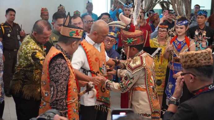 Kedua pejabat tersebut langsung dikukuhkan sebagai warga kehormatan adat Dayak melalui prosesi adat, mulai dari pemasangan atribut khas hingga pengucapan janji adat, yang kemudian ditandai dengan penandatanganan pernyataan resmi.
