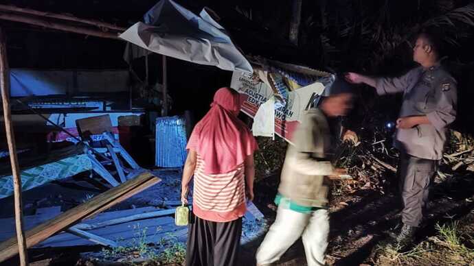 Warung yang terbuat dari kayu berukuran sekitar 4×5 meter dengan atap seng itu mengalami kerusakan pada bagian meja kayu dan tiang penyangga.