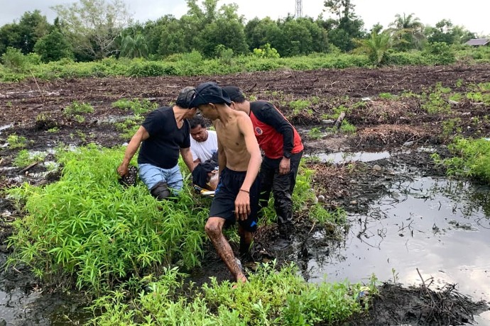 “Evakuasi sempat terkendala karena posisi korban berada di tengah rawa gambut dengan medan pijakan yang sulit. Tapi tim tetap berusaha maksimal,” kata Anang lagi.
