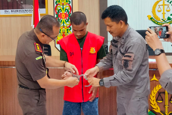 Prosesi pelepasan borgol dan rompi tahanan dilakukan oleh Kepala Kejaksaan Negeri Lamandau, Dezi Setiapermana, Kamis sore (28/8/2025) disaksikan oleh keluarga korban dan perwakilan kelurahan.
