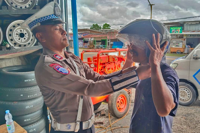Petugas turut memberikan imbauan kepada pengendara roda dua agar selalu menggunakan helm berstandar SNI, serta mengingatkan pengemudi roda empat untuk menggunakan sabuk keselamatan dan menghindari muatan berlebih. Personel juga membagikan brosur, stiker keselamatan, dan memberikan helm kepada masyarakat yang membutuhkan.