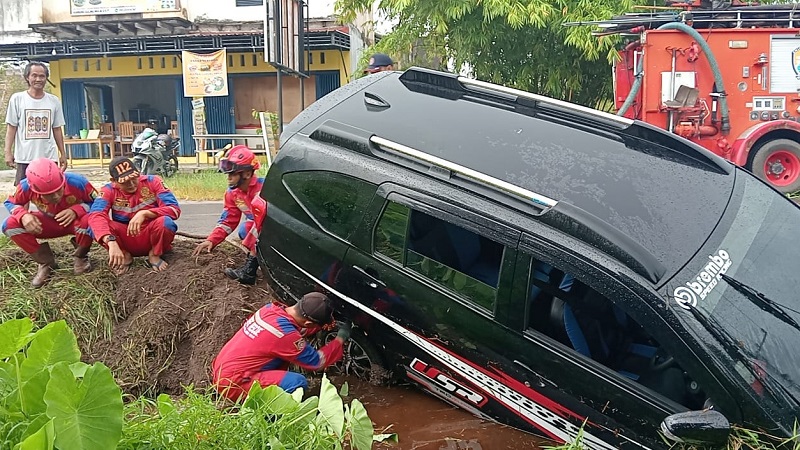 Mendapat laporan dari warga, Tim Rescue Damkar Regu 2 langsung menuju lokasi dan melakukan evakuasi. Proses penarikan kendaraan berjalan lancar dan berhasil mengembalikan mobil ke atas badan jalan dengan aman.