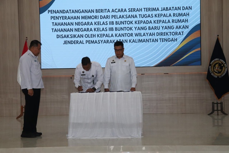 Sertijab dilakukan dari Pelaksana Tugas (Plt) Kepala Rutan Kelas IIB Buntok, Tigor Immanuel Hutabalian kepada Kepala Rutan yang baru, Febryanto. Proses ini ditandai dengan penandatanganan berita acara dan penyerahan memori jabatan, sebagai simbol peralihan tanggung jawab kepemimpinan di Rutan Buntok.