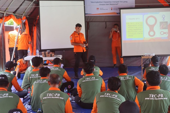 PALANGKA RAYA, PROKALTENG.CO – Sebanyak 50 relawan mengikuti kegiatan peningkatan kapasitas Tim Reaksi Cepat Penanggulangan Bencana Tahun 2025 oleh Badan Penanggulangan Bencana Daerah (BPBD) Kota Palangka Raya. Pelatihan yang berlangsung selama dua hari, 18–19 November 2025 itu, dipusatkan di Kantor Basarnas Palangka Raya.