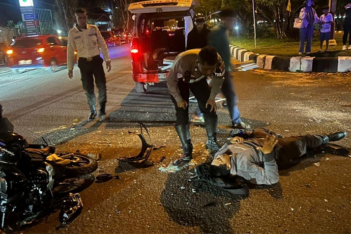 PALANGKA RAYA, PROKALTENG.CO – Kecelakaan lalu-lintas terjadi di depan Kantor Gubernur Kalimantan Tengah, Jalan G. Obos, Kota Palangka Raya, Rabu (22/10/2025) malam, sekitar pukul 19.15 WIB. Peristiwa itu melibatkan sepeda motor Honda Vario dengan mobil single kabin berwarna silver.