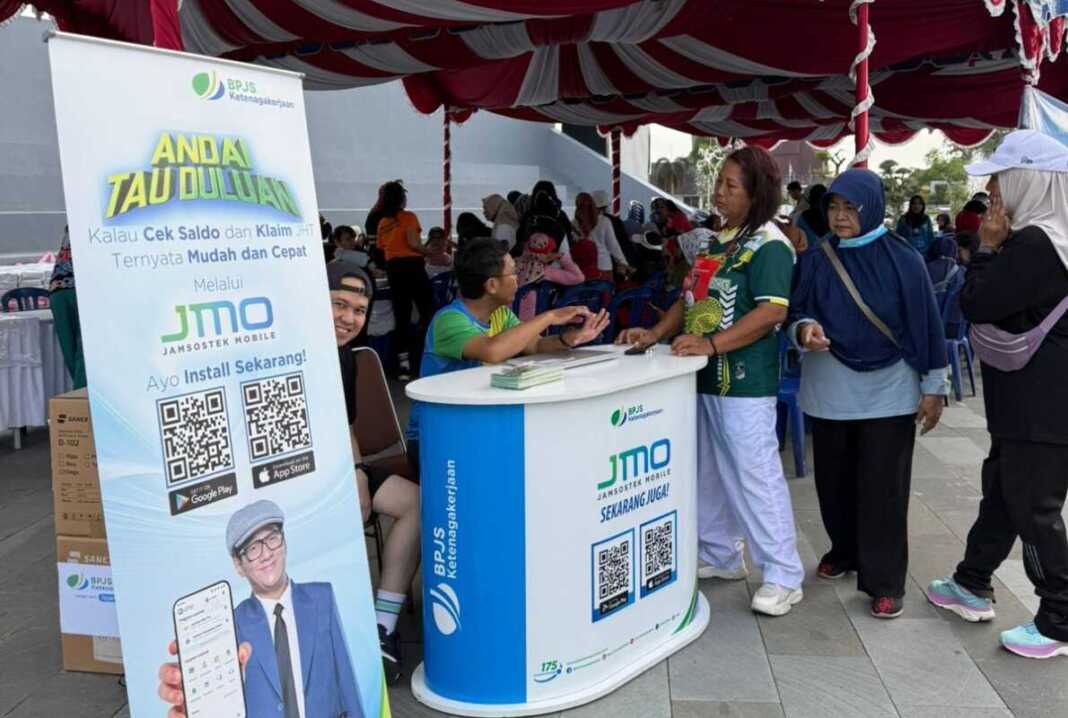 Melalui stand tersebut, tim BPJS Ketenagakerjaan memberikan informasi lengkap mengenai manfaat Program Jaminan Kecelakaan Kerja (JKK) dan Jaminan Kematian (JKM), serta melayani pendaftaran langsung bagi peserta baru di lokasi kegiatan.