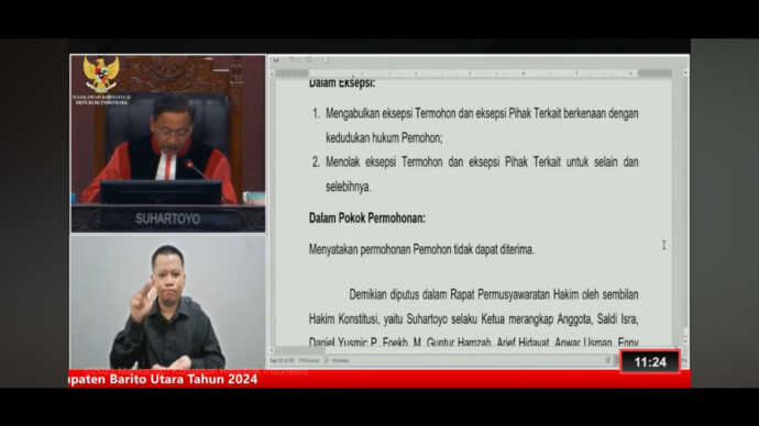 “Dengan selisih tersebut, pemohon tidak memenuhi ketentuan untuk mengajukan permohonan. Artinya, pemohon tidak memiliki kedudukan hukum,” jelas Daniel.