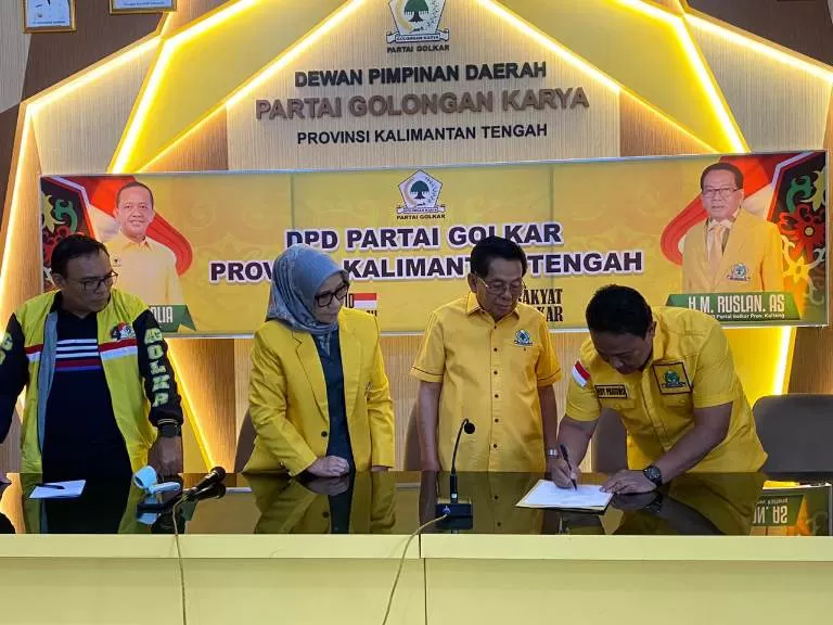 PALANGKA RAYA, PROKALTENG.CO – Wakil Gubernur (Wagub) Kalimantan Tengah (Kalteng) Edy Pratowo hadir dengan kemeja kuning khas Partai Golkar saat mengambil formulir pendaftaran calon Ketua DPD Golkar Kalteng.