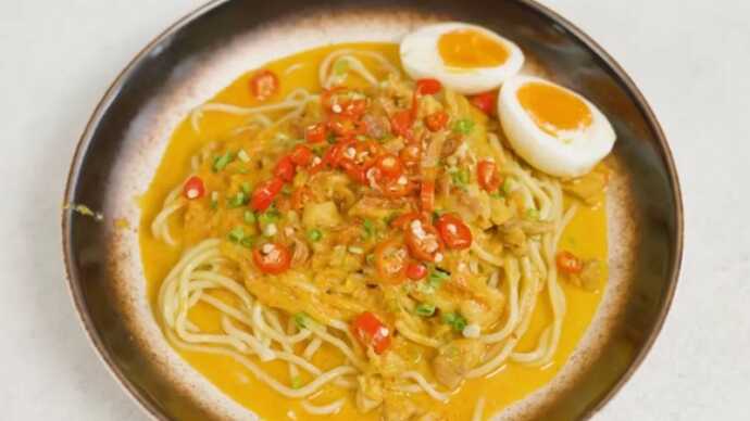 Hidangan mie gomak ini cocok disajikan hangat untuk makan siang atau malam. Kuah gurih santan dan aroma rempahnya terasa khas, membuat lidah langsung jatuh cinta.