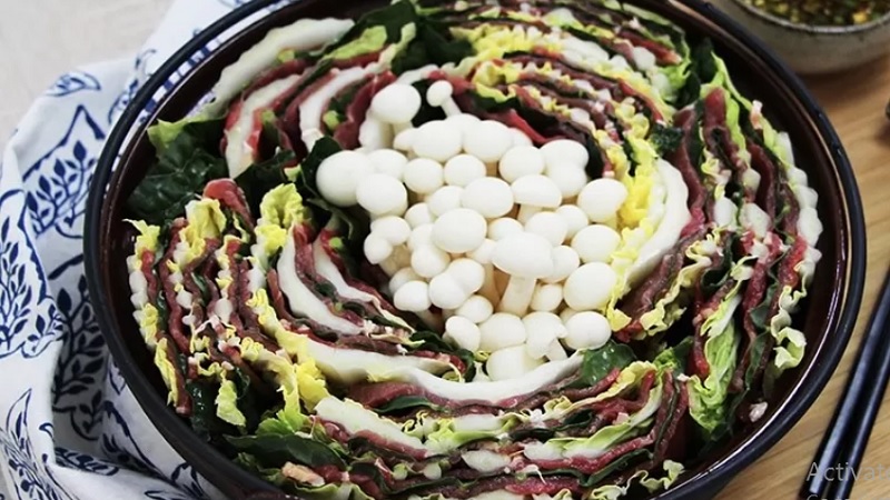 Daging yang diiris tipis membuat teksturnya lembut dan cepat matang, sementara sawi putih memberikan rasa manis alami yang menyegarkan.