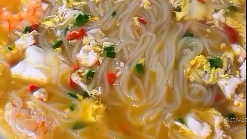 Tuang telur kocok perlahan sambil diaduk agar membentuk serat telur dalam kuah.