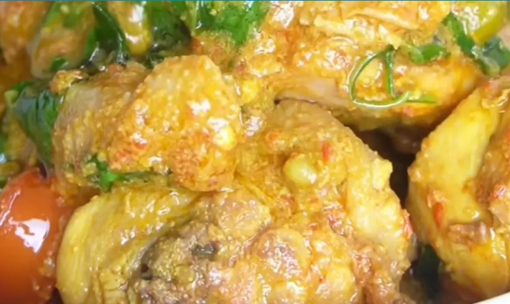 – Masak ayam bersama bumbunya hingga matang dan empuk.