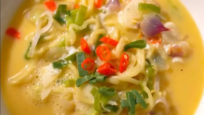 Mie kuah susu tanpa susu ini bisa jadi menu andalan saat cuaca dingin. Selain cepat dibuat, rasanya juga fleksibel dan bisa dikreasikan dengan tambahan topping seperti bakso, sosis, atau sayuran sesuai selera.