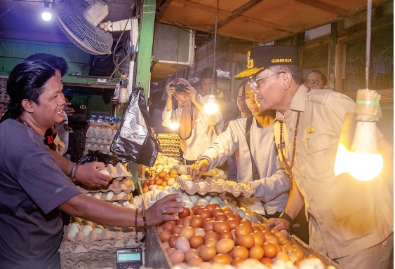 Dalam peninjauan tersebut, Gubernur berdialog langsung dengan para pedagang untuk mengecek harga sejumlah komoditas utama seperti beras, minyak goreng, telur ayam, daging, hingga cabai.