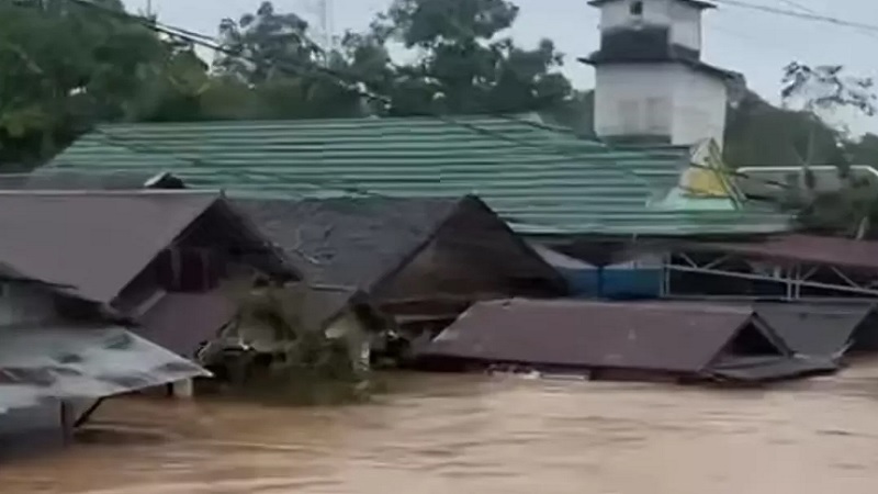 Dari video yang beredar, banjir bahkan menyentuh rumah warga. Kondisi itu membuat Warga panik. Sebab, selain debit yang tinggi, arus deras juga menghantam wilayah tersebut.