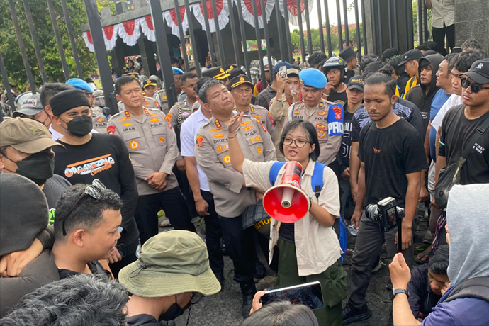 “Kalian datang ke sini, saya sudah mendengar aspirasi kalian semua. Saya sudah menyampaikan kepada seluruh anggota untuk mengamankan semua aspirasi,” ujarnya.